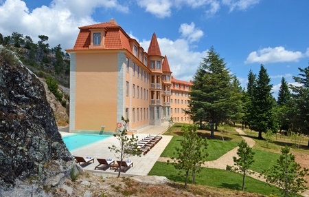 High in Portugal's Serra da Estrela, an orange-hued fortress sprawls across the mountainside like something out of a Wes Anderson …