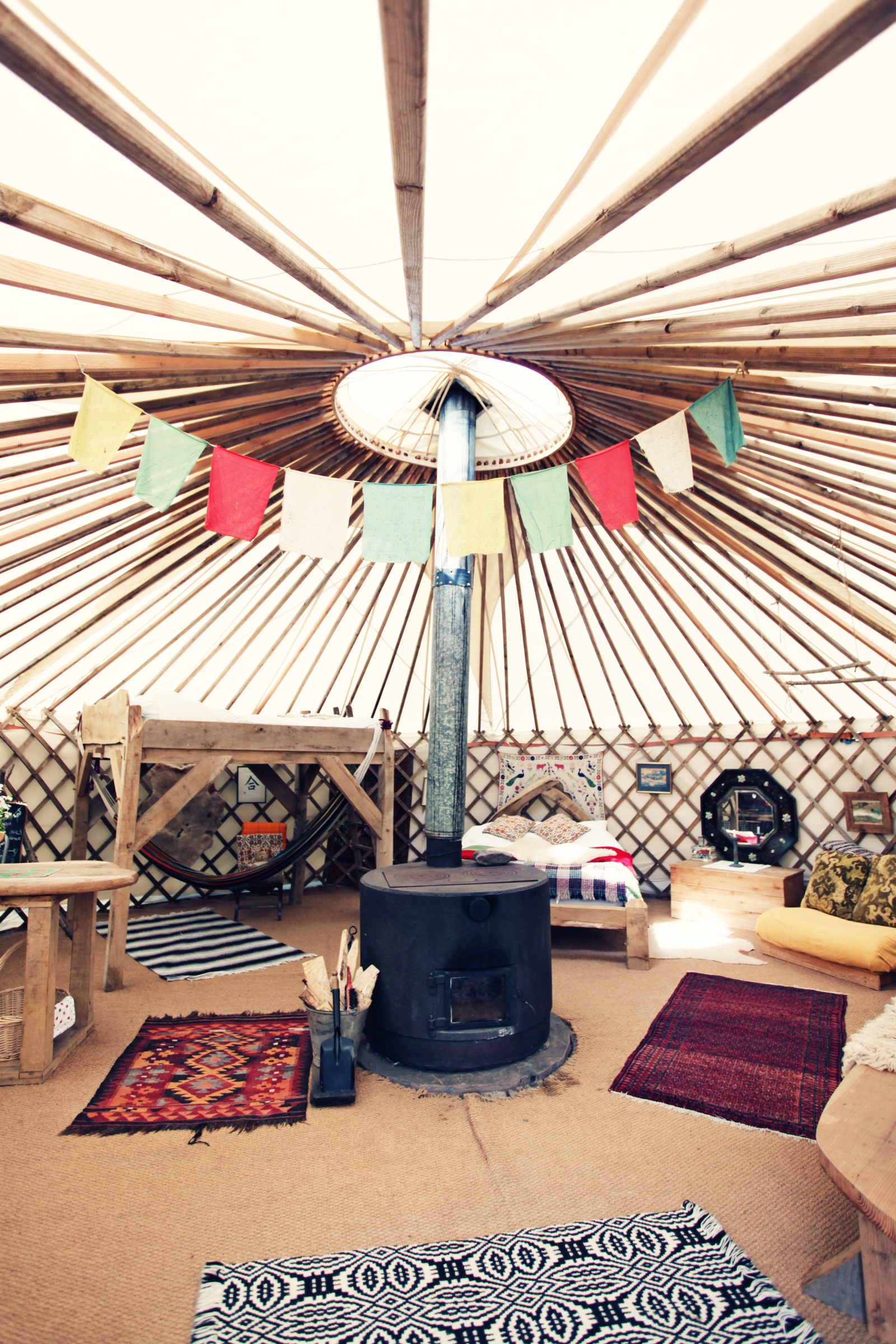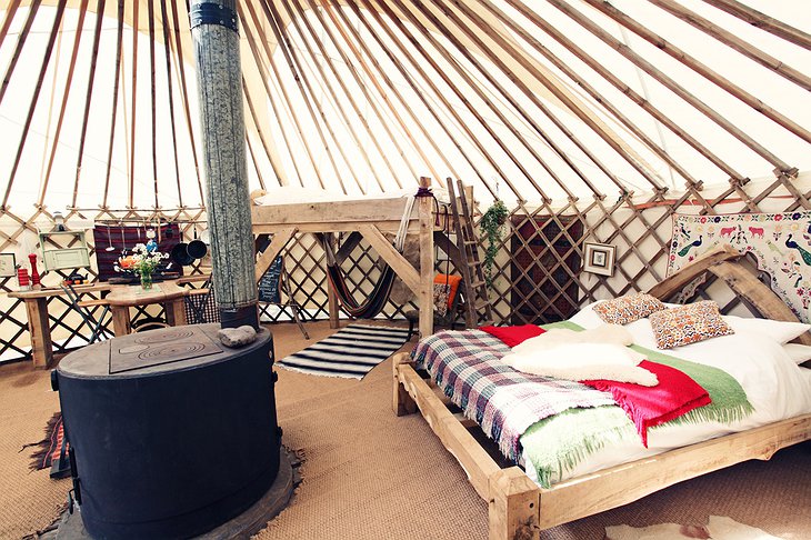 Ever wondered if the Britain of Beatrix Potter still exists? If there still are parts of the island where people still live in harmony? Gentle countryside living is what you will get when you stay in the Black Mountain Yurt. Situated in an area of outstanding natural beauty, your yurt is the perfect cross between a tent and a warm front room. There is no electricity - all the light comes from candles, and there is a wood-burning stove to keep you warm at night and in the early mornings. Inside, it's all very cozy, sheepskin rugs and warm Welsh wool blankets on the hand-made oak bed.
