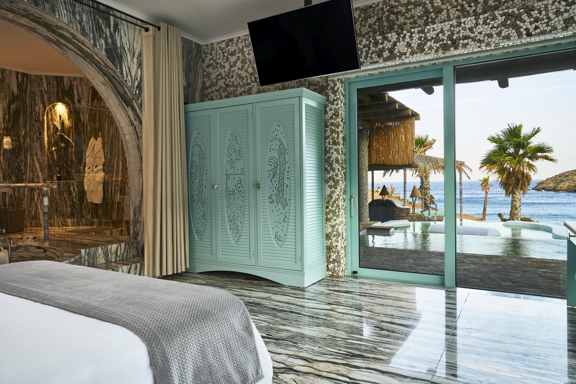 Don't worry if your room doesn't include a private pool, as you can book a place by the rock pools and have the butler bring you a set of Greek tapas, mezze platters, and cocktails.