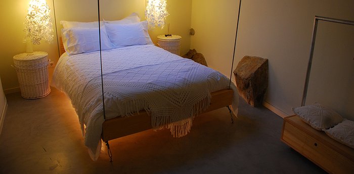 Their Coruja room has a suspended bed and a starry-sky effect on the ceiling. Or you could choose the Noitibó suite with a fireplace and mezzanine loft. You will eat your meals in a family dining room rather than a restaurant making for a more informal experience. There is also plenty of room for socializing or watching DVDs in the evening.