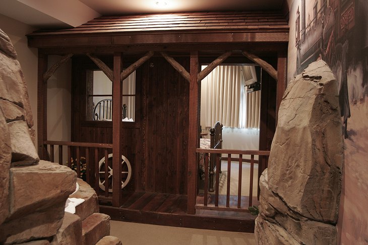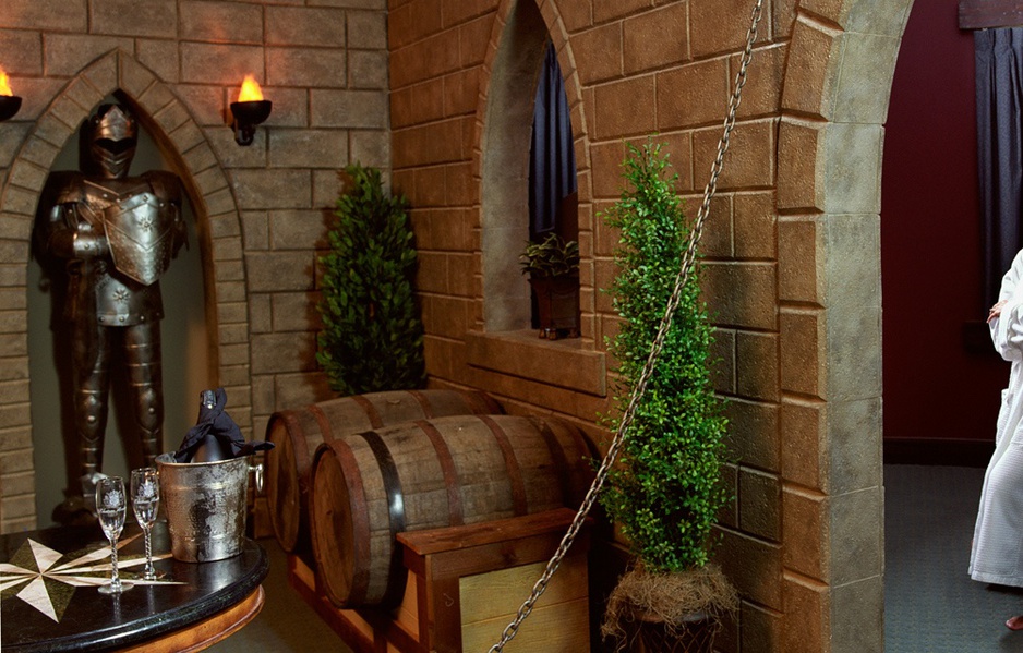 The hotel is comprised of 61 guestrooms and 23 concept suites with a variety of themes to create a different experience for every guest. You can customize your stay by choosing from a variety of themes such as a pirate cove, a deserted island, the rainforest, an Egyptian palace, a New York penthouse, an Italian villa, or even Camelot. Whether you choose one of the classic rooms, adventure rooms, or large suites, each room includes custom-built Beau-Rev mattresses, Egyptian cotton linens, a 2-person jet tub, flat-screen LED TVs, high-speed Wi-Fi, and complimentary breakfast.