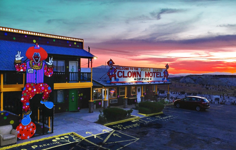 If you overcome your coulrophobia (fear of clowns), Clown Motel is an excellent place to take incredible shots!