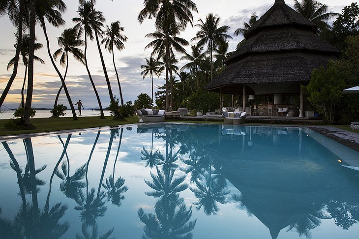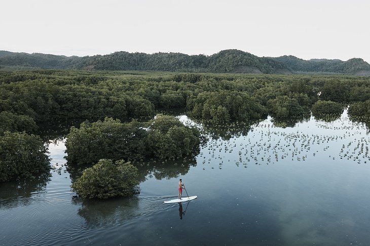 The resort can only accommodate 20 people at a time and was built using local craftsmen and materials. Local natural beauty spots are worth exploring; one of the most popular is a maze of lagoons and caves that you can access via the resort’s boat. The furniture is designed by the owner, Robert Dekeyser in his unique woven style and the restaurant serves a variety of cuisine all cooked to order and sourced from the resort’s own organic farm. Local attractions are few on this secluded paradise but you can go by motorbike to a tiny town with a bustling fish market or check out the famous Cloud 9 surf break.