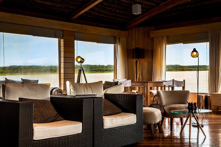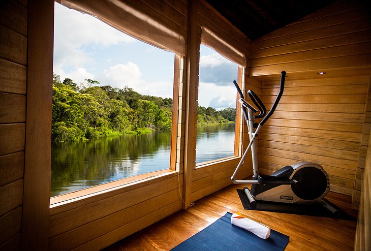 How does immersing in the deep rainforest on a floating luxury hotel sound? Delfin offers precisely this. Starting from the Peruvian town of Iquitos, their three uniquely designed vessels are ready to cruise deep inside the Amazon jungle. Onboard you'll find spacious suites with panoramic floor-to-ceiling windows overlooking the water and the surrounding environment. The top deck features relaxing indoor and outdoor lounge areas, a sundeck with a plunge pool, a spa, and a gym. The restaurant serves yummy and authentic Peruvian dishes.