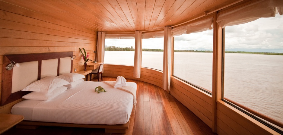 How does immersing in the deep rainforest on a floating luxury hotel sound? Delfin offers precisely this. Starting from the Peruvian town of Iquitos, their three uniquely designed vessels are ready to cruise deep inside the Amazon jungle. Onboard you'll find spacious suites with panoramic floor-to-ceiling windows overlooking the water and the surrounding environment. The top deck features relaxing indoor and outdoor lounge areas, a sundeck with a plunge pool, a spa, and a gym. The restaurant serves yummy and authentic Peruvian dishes.