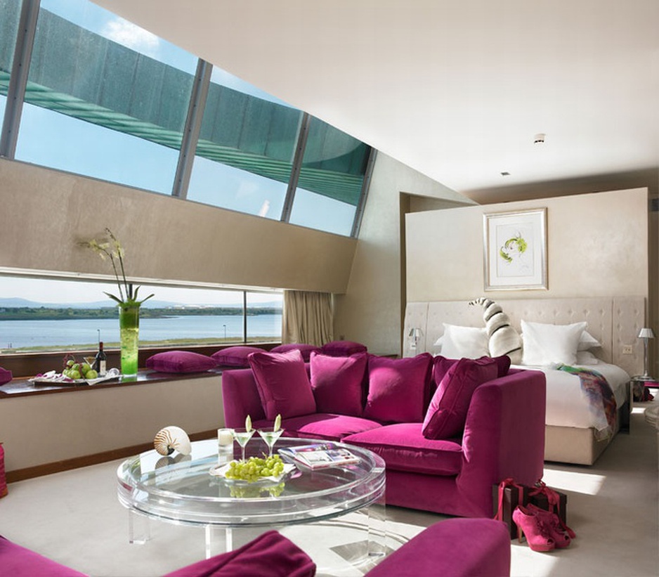 There is a collection of contemporary art, photography, and design handpicked by and on display. And through the windows, God’s own art is on display as swirling cloud forms highlight green Galway Bay.