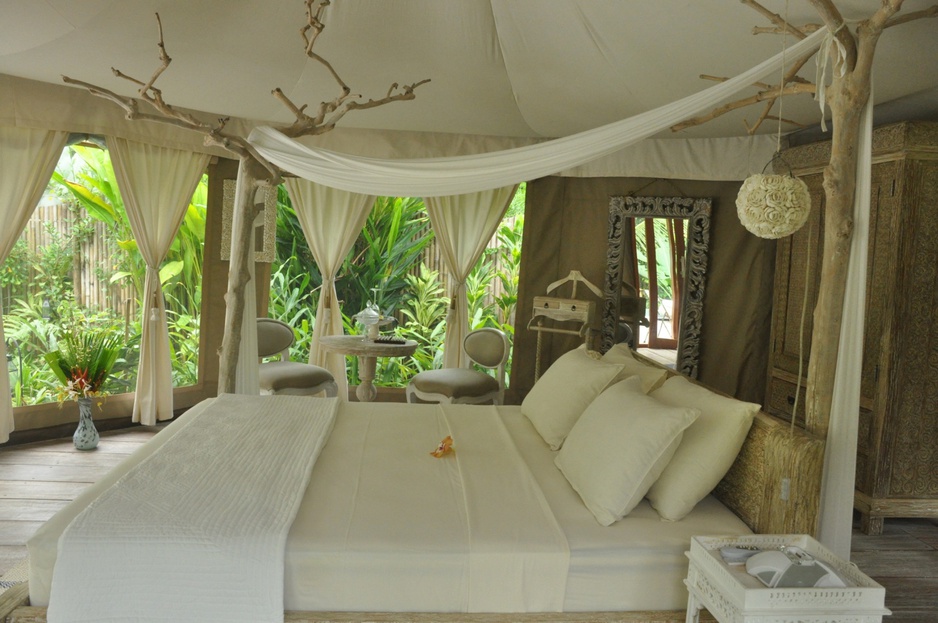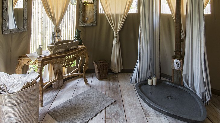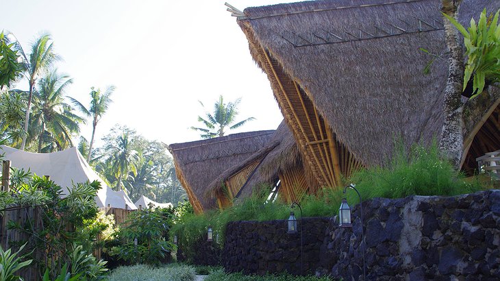 There is a range of accommodations. Stay in a lumbung – the traditional rice barns that, according to Wikipedia, “are the pride of Sasak vernacular architecture”. At Sandat the lumbung have each been luxuriously appointed with handcrafted furniture and canopy beds. The elegant suite tents are reminiscent of colonial Safari Tents and have chandeliers, Venetian-style mirrors, and crystals of the abatjour.