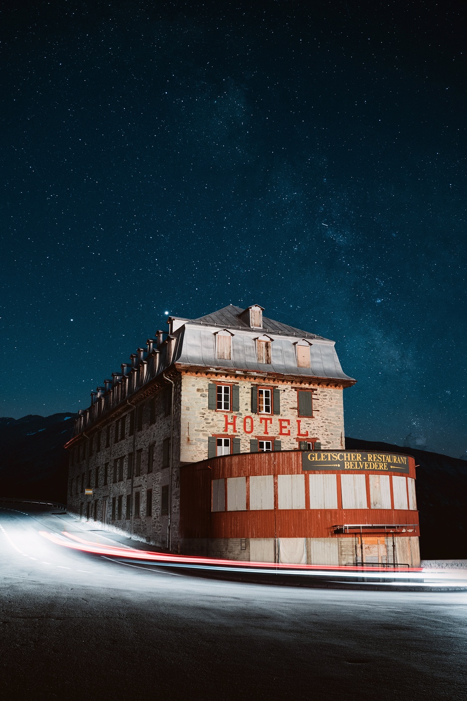 But the iconic mansard roof of Belvédère Glacier du Rhône, with its stone facade and Rose Hall's red wood-laden front, is still a fantastic sight with the 180 degrees bend of the Furka Pass and the glorious Alpine background. Especially on a starry night!
