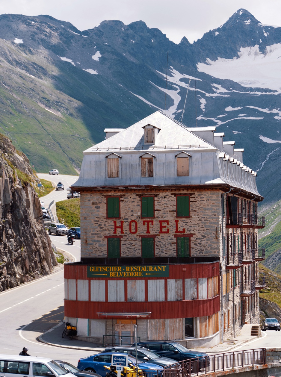 The iconic Alpine hotel of the 19th century has seen better days. Back in the early times, at the peak of its operation, tourists flocked to see Rhône Glacier's breathtaking. Hotel Belvédère is located on a majestic curvy mountain road.