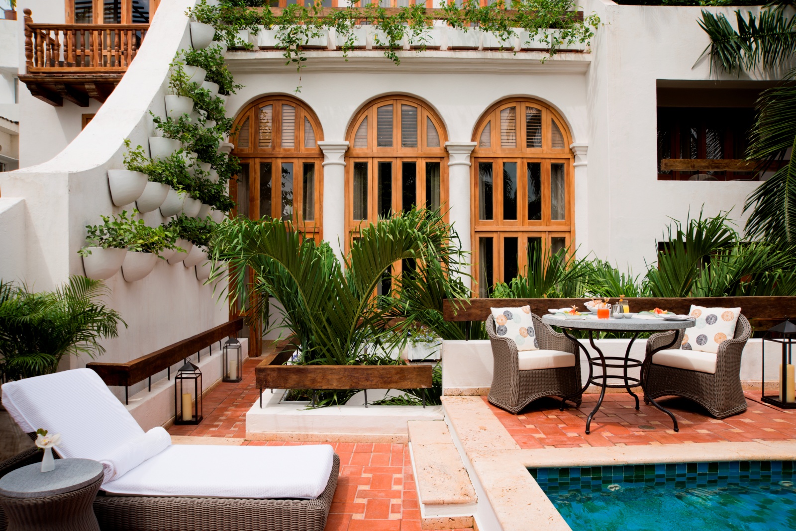 The courtyard is a perfect place to partake of a pink cocktail after a day at the beach or sightseeing.