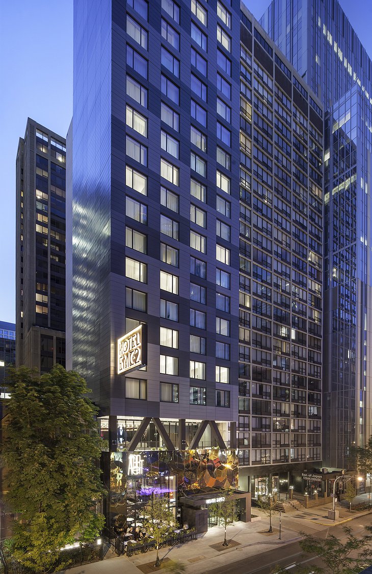 The concept behind EMC2 was inspired by Northwestern Chicago, where the hotel is located. As the hotel’s creator and project developer Scott D. Greenberg explained, “I thought about this area, next to Northwestern, the research labs and medical school, and all this technology. I wanted a concept that would speak to that.”