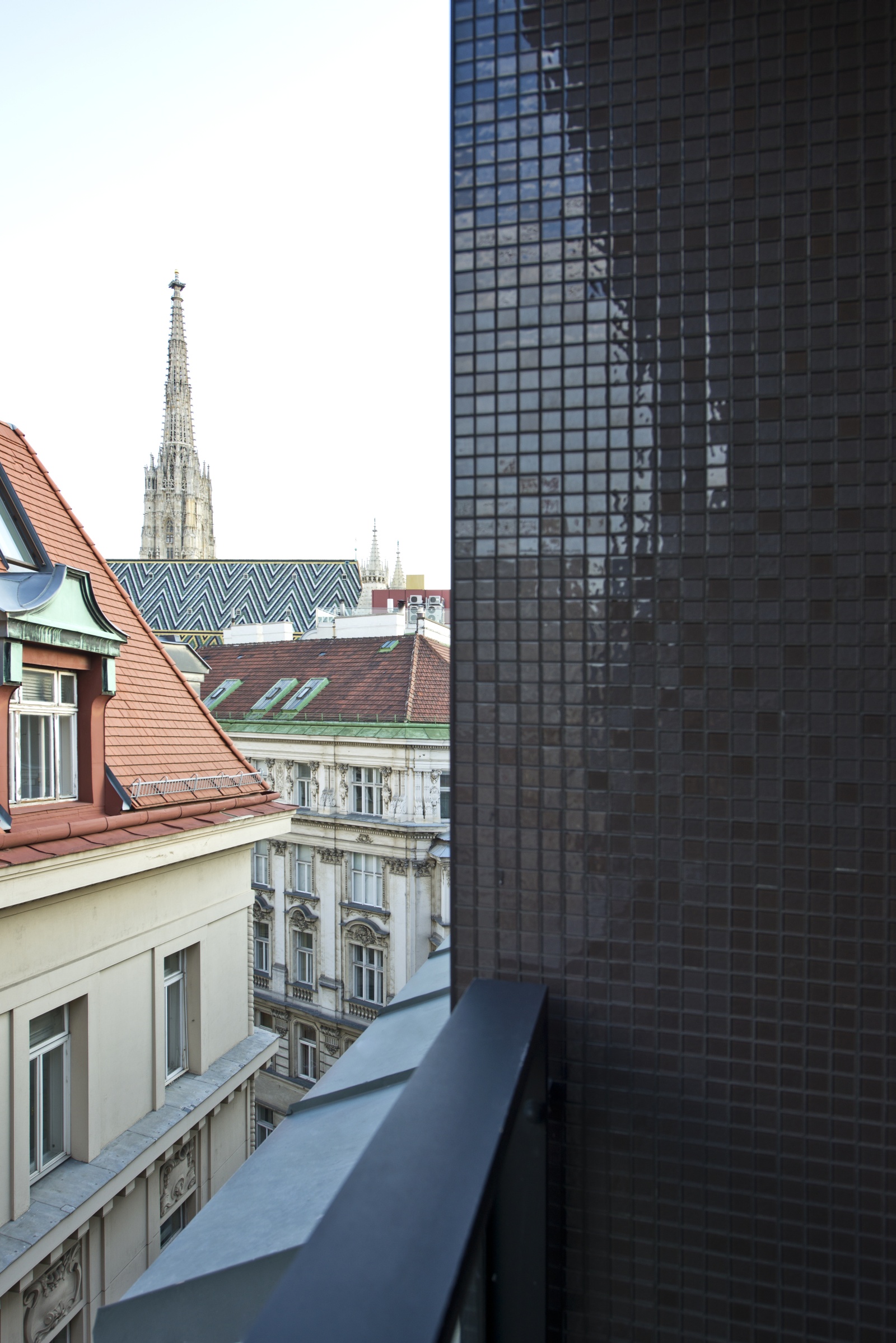 The design, created by BWM Architekten und Partner, is unconventional and distinctive among Vienna’s historical architecture. Inside, the curved windows serve as comfortably rounded spots for sitting or lounging while you watch the hustle and bustle of the city below. All 32 guest rooms are decorated in cream and sand colors with mahogany paneling, giving the spaces a simple yet rich feel. Newly constructed bathrooms are lined with nickel, chrome, and marble, rounding out the feel of luxury.