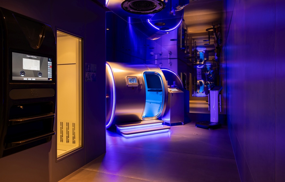 The Multi Cryo Hacking System uses deep heat, light, and highly ionized oxygen across a range of programs targeting relaxation, regeneration, and stress reduction. The cold chamber takes you to minus 60 degrees Celsius for preparation, then to minus 110 degrees for the main exposure - cold enough to stimulate circulation, accelerate recovery, and trigger endorphin release.