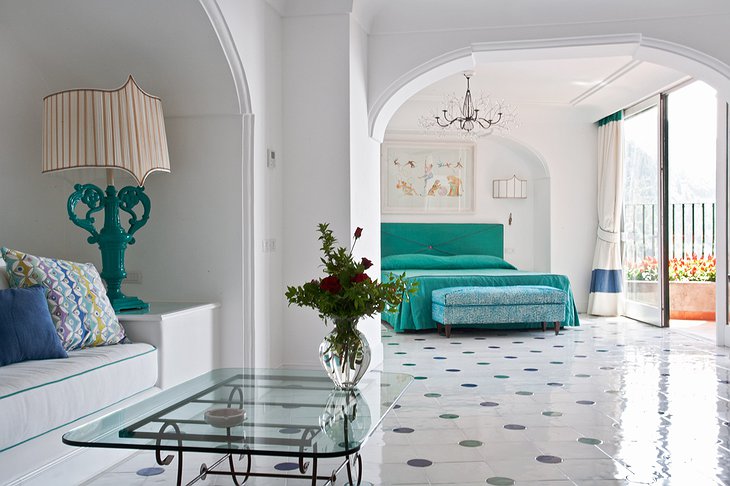 This hotel is hewn out of the very living rock on the Amalfi coastline. Want to go to the beach? Then take the lift through the rock to the sand below. Your vine-hugged balcony has some of the finest views you will ever see - from the sea to Positano.