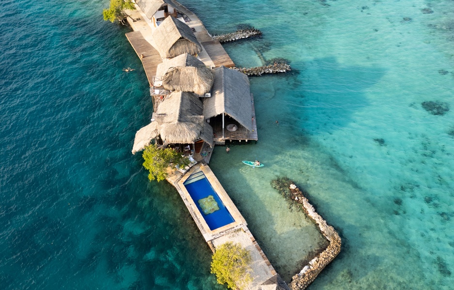 Isla Kalua is one of Colombia's coolest rentals, built in the shallow waters of the Caribbean Sea. It's where you can take all your friends and chill in a scenic spot surrounded by water. Dance all night long, have a tasty breakfast prepped by the chefs, and dip into the water whenever you like. The island is all yours!