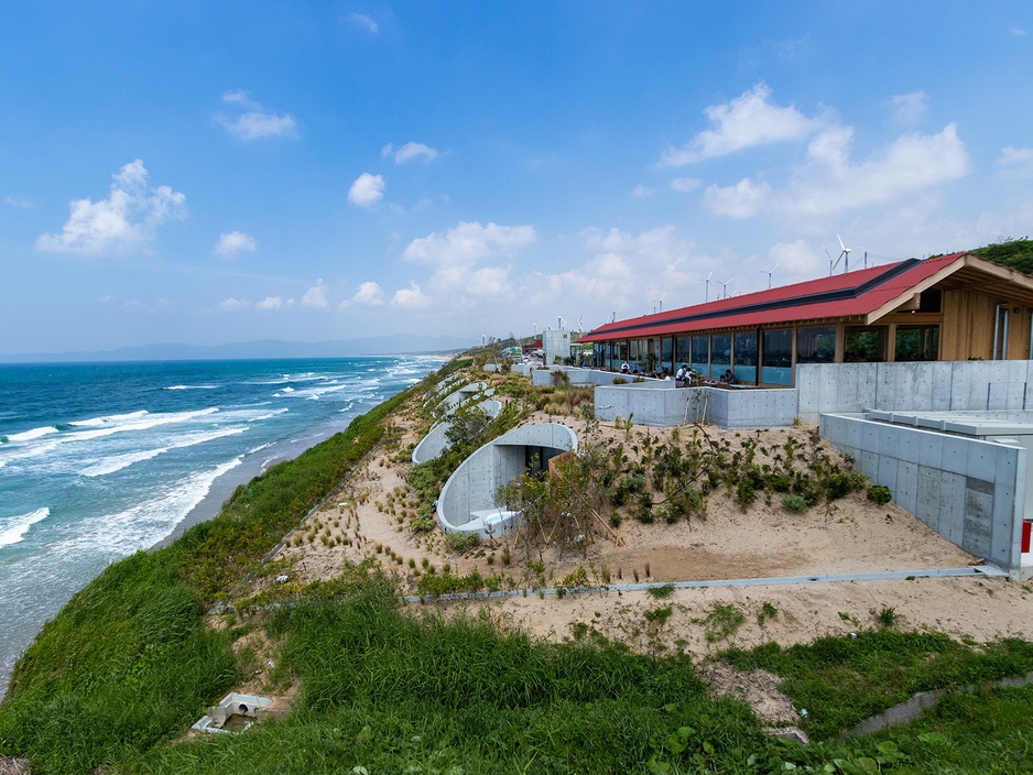 Garb Cliff Terrace Izumo is a spacious wooden restaurant and café with a minimalist concrete terrace.
