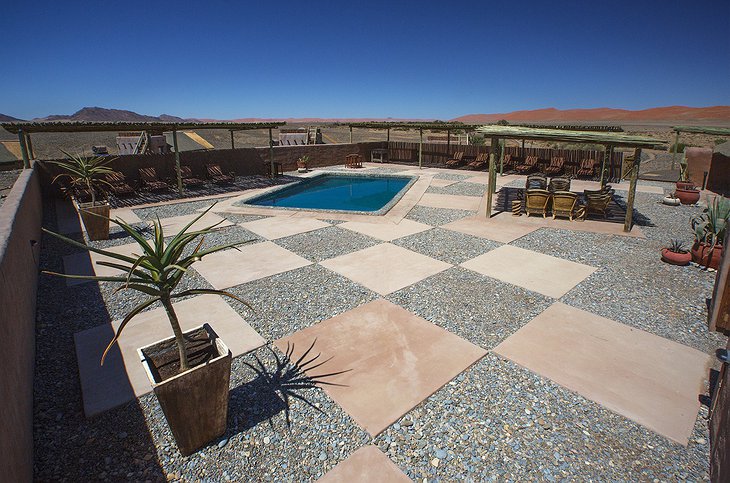The Kulala Desert Lodge is surrounded by the iconic red sand dunes of the Sossusvlei in the heart of the Namib Desert. Situated on the private 37,000 hectares Kulala Wilderness Reserve, guests can enjoy unmatched desert luxury as they take in the spectacular views of the Namib-Naukluft dune sea, mountain range, and open plains.