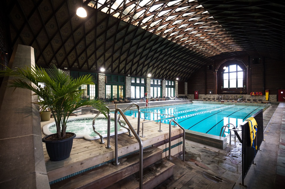 The hangar-shaped indoor swimming pool is housed in one of the resort's separate buildings, connected to the hotel via a tunnel. The pool is much larger than you are used to in typical hotels, with its 75-foot (23-meter) length.