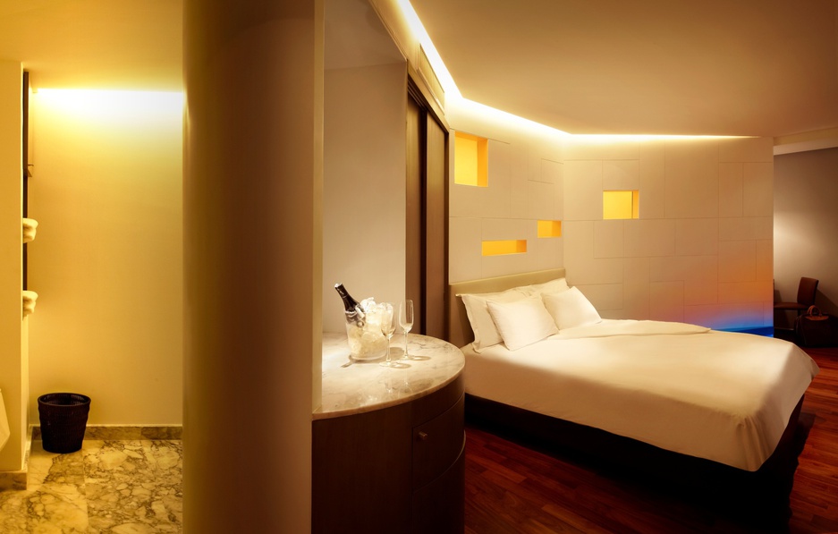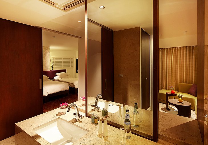 There is an infinity pool that is protected by the sweeping curve of the walls. And the detached façade, which you can see in these pictures, is a metaphor for a bridal veil. When you stay here you get a free 10-minute foot massage but you will want to check out their exclusive Kiriya Spa for a unique range of treatments called “dances” because these special massages were invented taking inspiration from traditional Thai dances. The restaurant is called the “Bistro of Creative Drinking and Eating” and serves, well, I assume something unexpected and delicious. There is also a cocktail bar located on terrace-like decks.
