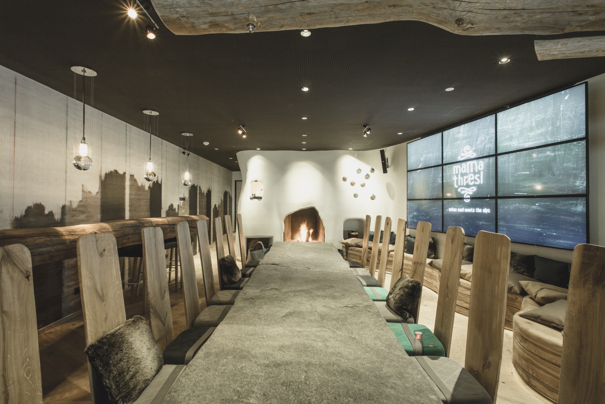 Soak yourself in the unparalleled beauty of the Skicircus Saalbach - Leogang - Fieberbrunn in the town of Leogang. This is where mama thresl, the hotel that invites sporty urban souls, is located. The chic building is designed and constructed from locally available natural materials. Native pine wood with a calming scent for a night of good sleep is used throughout the interiors, as well as rocks to create natural stone basins and shower walls to remind you about your rock-climbing sessions.