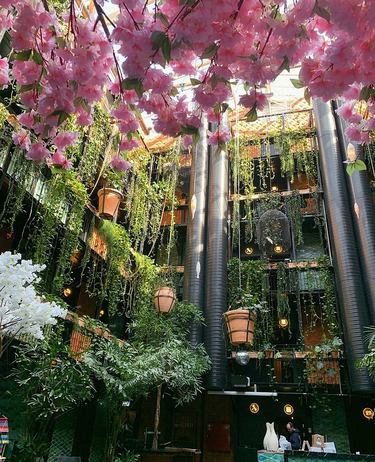 A vertical explosion of greenery surrounds the blue-tiled pool. You can order a cocktail or your favorite smoothie here and pretend to be in Bali.
