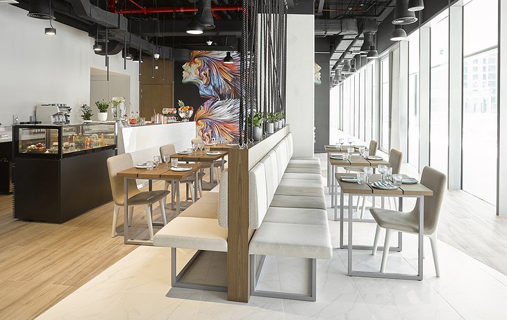 Rooms are spacious and inherit the same design language found in the Atrium. There are two types of rooms: Aura and Vibe, as well as four types of suites: Chic, Passion, Personality, and Suite Me. Uber modern looks and ergonomically designed king-size beds come as standard.