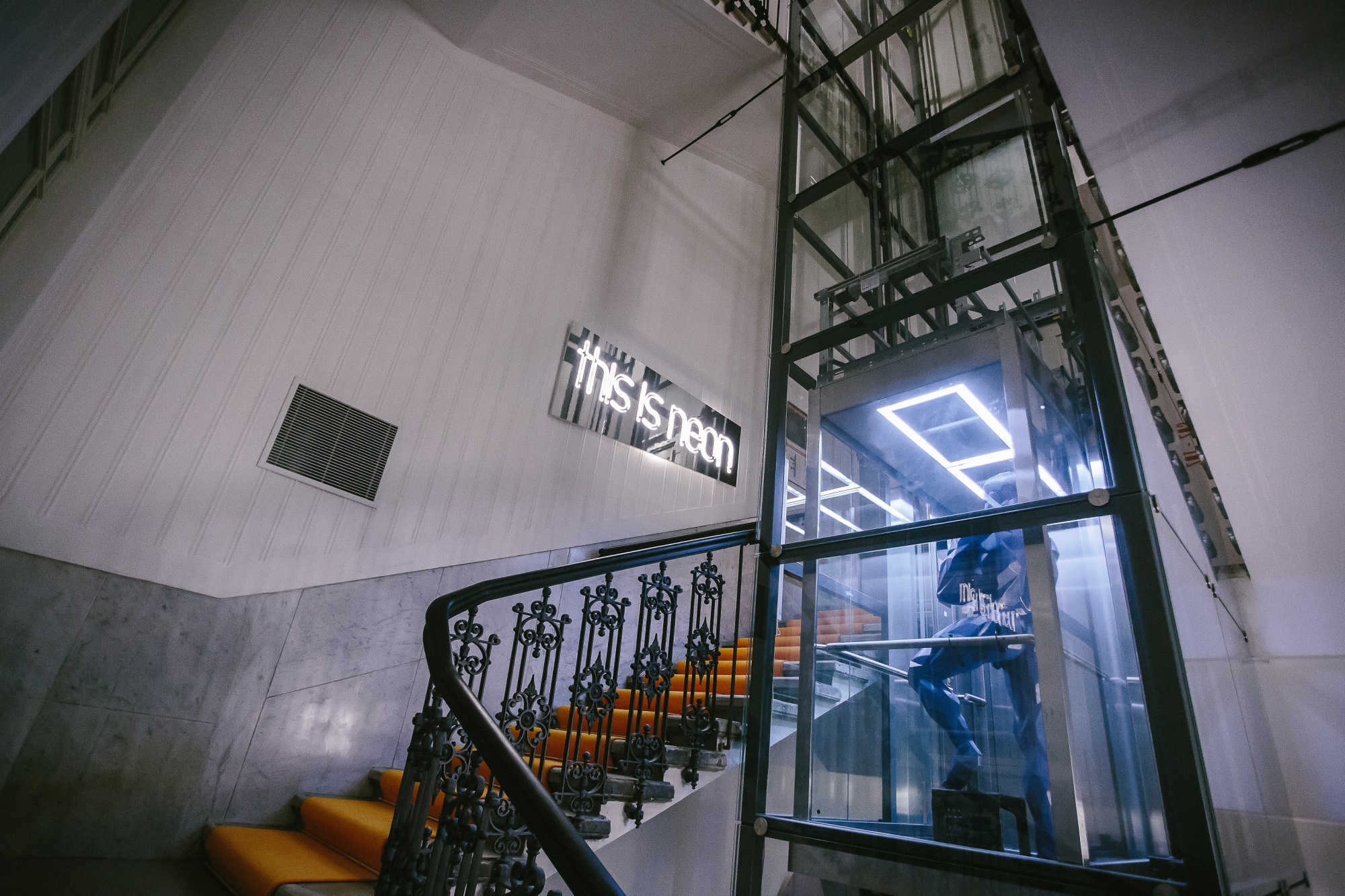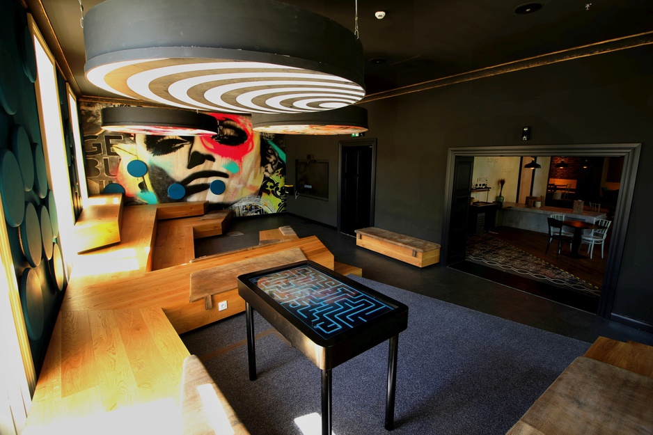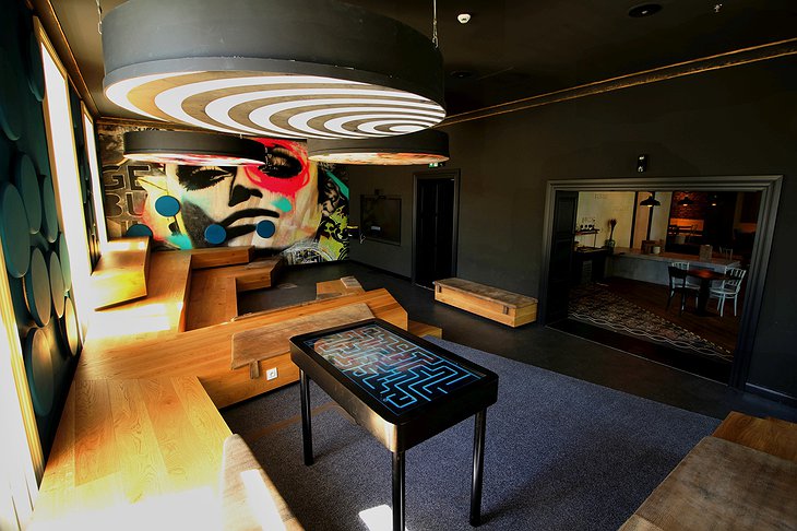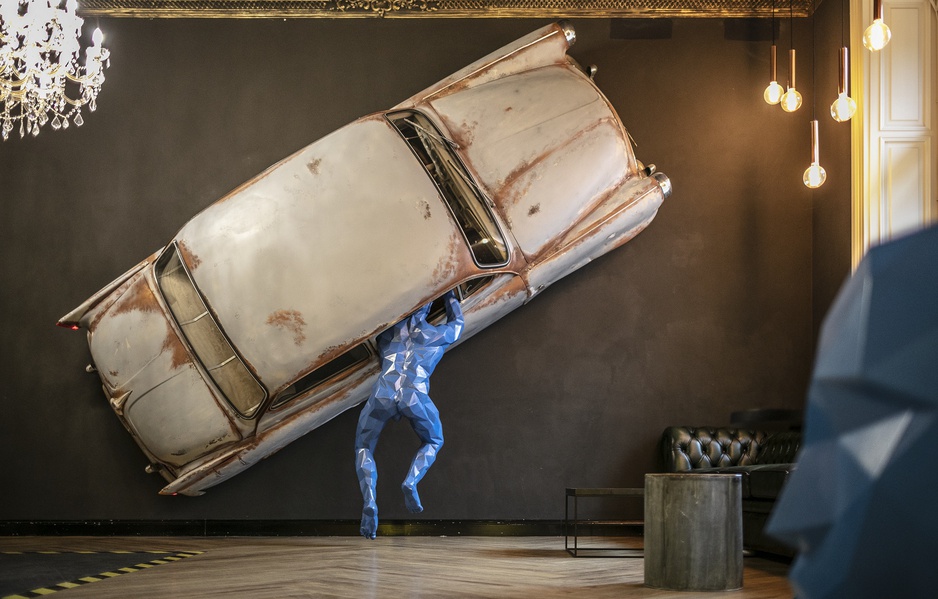 Unconventionalism strikes as soon as you enter the reception. Rusty vintage car hanging from the wall while a 3D printer is busy creating the next contemporary artwork. A life-size plastic blue man is waiting in the elevator, casually freaking you out if you happen to be slightly intoxicated after gulping a few pints of the good old Czech beer. The rooms are plastered with a giant-sized map of the Prague metro system, making sure you won't get lost.