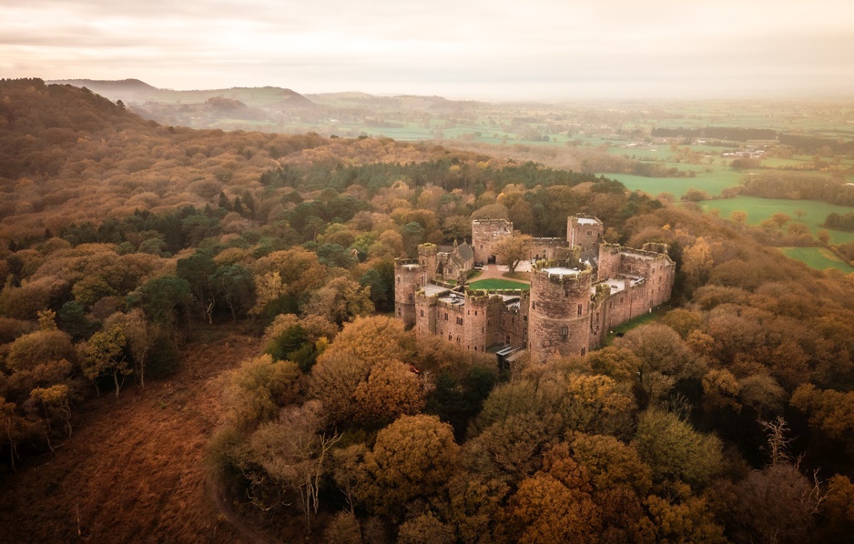 The castle sits on a wooded ridge at the northern end of the Peckforton Hills, about an hour's drive from both Liverpool and Manchester. The approach is suitably dramatic – you wind up through forest, past the original gatehouse, with the wrought-iron portcullis looming overhead as you enter the castle ward. From this height, you can see the ruins of the genuinely medieval Beeston Castle perched on a hill three-quarters of a mile to the north.