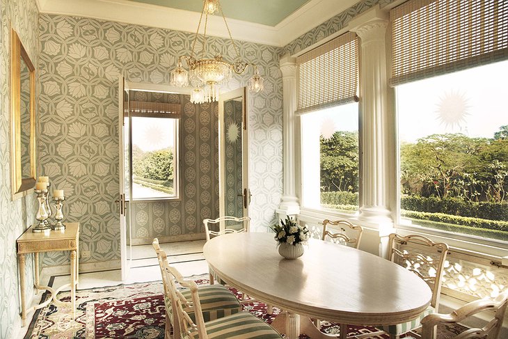 Placed on Conde Nast Traveler’s hotel “Hot List 2017”, the Rajmahal Palace is truly a sight to be seen in Jaipur, India. Not just rich in beauty, this palace is rich in history as well. Once the official residence of the British Resident Political Officer of Rajputana, the palace has been home to many royals over the years. It’s not surprising – the palace is dripping with chandeliers, gold accents, and specially designed wallpapers and fabrics.
