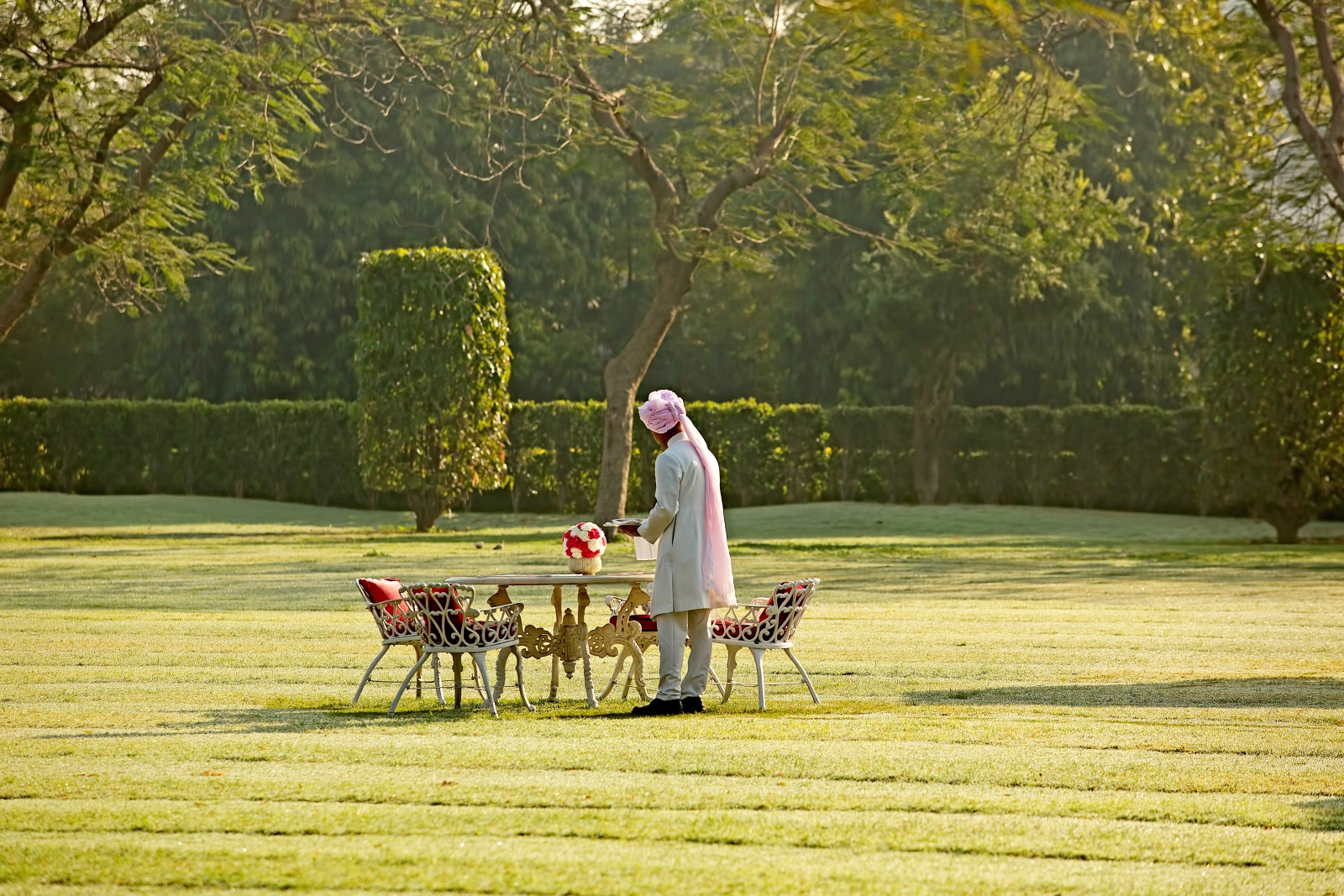 Dining options at the palace are just as rich as the rooms; named for the Pink City of India, 51 Shades of Pink is decked out with pink wallpaper and beautiful white tables and chairs throughout. It’s a great place for guests to grab breakfast. If pink isn't your color, head over to The Colonnade; turquoise accents pepper this 24-7 dining area where guests can enjoy India’s best comfort food cuisine.