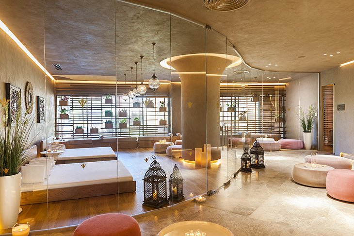 During your stay at the Bademlik Termal, you can get away from children and indulge your body and senses by relaxing in the spa while admiring the blend of history and the magnificent architecture of the building. The spa offers Turkish and Finnish baths, an indoor and outdoor swimming pool, a fully equipped gym, a beauty center, therapy, and massage rooms, and many expert physical therapists.