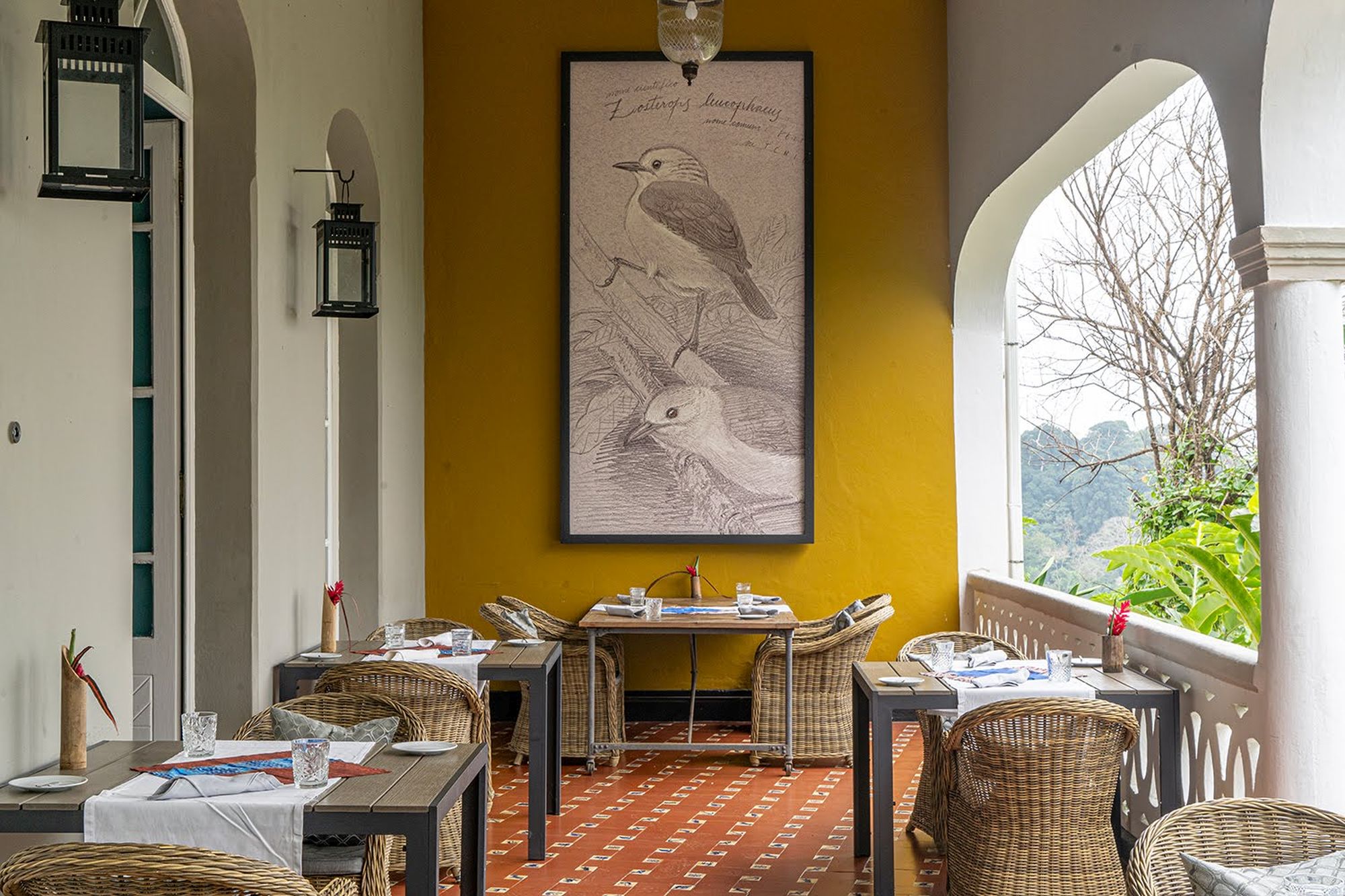 The colonial-style hotel has been fully restored with the help of local workers and materials. It offers 15 rooms in total — nine rooms in the Plantation House and six in the Colonial House. The restaurant serves all the dishes with ingredients sourced from the on-site garden or local sellers. On the Roça Sundy restaurant's veranda, you will feel like you have traveled back in time. An intimate setting awaits you with just a few tables and candle-lit dining overlooking the flourishing greenery.