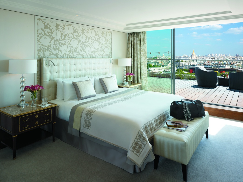 The spa is located in the palace’s former stables and has the largest indoor pool in Paris by huge glass doors that reveal a large outdoor terrace. The Eiffel Tower, then, is a fitting backdrop to this stunning hotel.