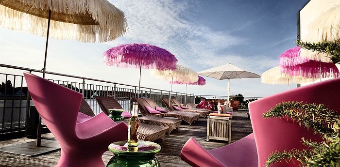 With a 360° rooftop terrace overlooking the Berlin Zoo, this trendy German hotel designed by Werner Aisslinger is a neat option for travelers with a sense of adventure and whimsy. While the name implies a bikini-clad dress code, rumor has it that the moniker actually comes from the third floor …