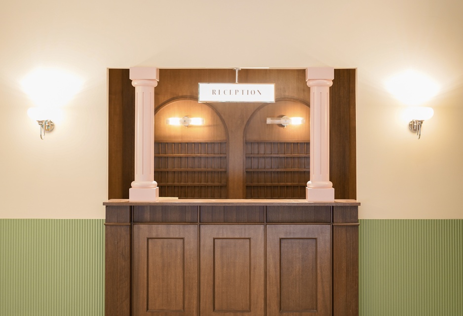 Spread in the former building of the Ray Parc Hotel, this 86-room boutique hotel wears its Wes Anderson inspiration openly. From symmetrical compositions and pastel color palette to the precisely arranged retro items - like the vintage TV, vinyl player, and LP records in the lobby. They aren't just decorative either. You can hear some classics played throughout the lounge for vintage vibes.