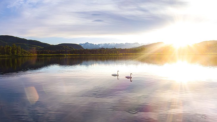 Tordrillo Mountain Lodge's core element is the peaceful environment, wholly detached from the outside civilization. But the natural highlights are the adventures that are waiting for you here. The lodge has its own eFoil electric surfboards for a crazy ride on the lake. They also have a fleet of aircraft, including helicopters that can take you even deeper into the wild landscapes of Alaska. One of their iconic trips is a helicopter ride to the rocky mountains at 4,000 feet above sea level. This is the starting point for a 900 vertical feet ascent on an iron path using carabiners to climb. You will be rewarded with absolutely stunning views of the Triumvirate Glacier and the Tordrillo Mountains at the peak.