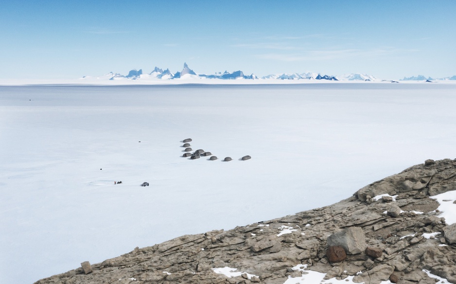 The Echo camp is White Desert's newest, space-age addition with state-of-the-art spherical fiberglass "sky pods". From a distance, the cluster of dark silver capsules on the thick ice sheet looks like a camp on a faraway planet.