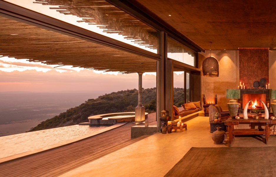 Perched at 7,200 feet (2,195 meters) on Kileleoni Hill - the highest point in the Maasai Mara - this exclusive-use hilltop lodge is an engineering feat of cheerful audacity. During construction, two vehicles carrying materials rolled on their way up. Every piece of glass arrived shattered on the first delivery. The road up was originally built by hand. None of that deterred owners Tarquin and Lippa Wood, who have spent the better part of a decade turning this remote mountain plot into something genuinely unlike anything else in the region.