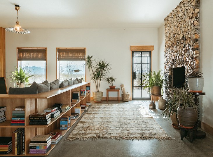During the Willow House's construction, every rock and ocotillo moved out of the way was brought back to the property to minimize the environmental impact. For the same reason, the natural color of concrete was used for the exteriors to fit with the desert's naturally occurring colors.