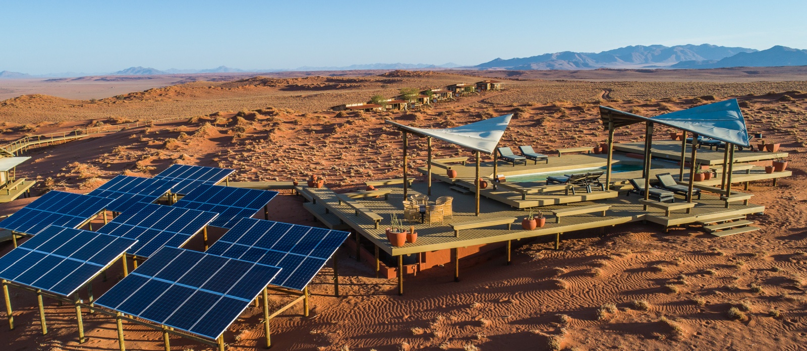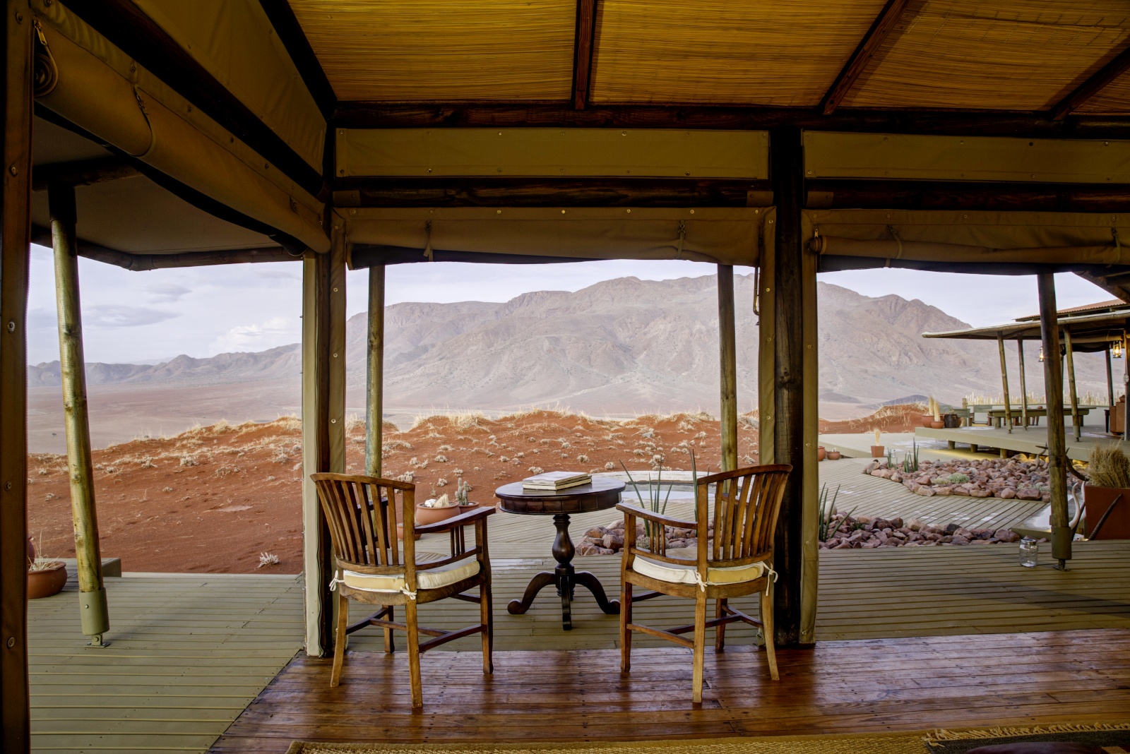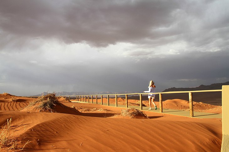 The resort is set in the NamibRand Nature Reserve, a conservation project committed to low-impact tourism and sustainability in southwestern Namibia. Each lodge in the reserve is limited to 20 beds only, which means that you will never see tour buses around. Or even more likely, you will hardly see any people at all. So sitting on the private deck of your chalet, you will easily feel like the only human being in the vast wilderness around you.